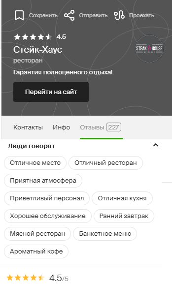 Ресторан Стейк-Хаус встречает новый весенне-летний сезон и подготовил для своих клиентов подарок. Это Летняя веранда, где можно отметить любой праздник, событие, юбилей, торжество в кругу друзей, знакомых, родных, расположившись в беседке, в деревянной веранде. Пение птиц, буйная зелень, живописные природные участки подарят уединение, покой, радость наслаждения кухней ресторана и общением с близкими.